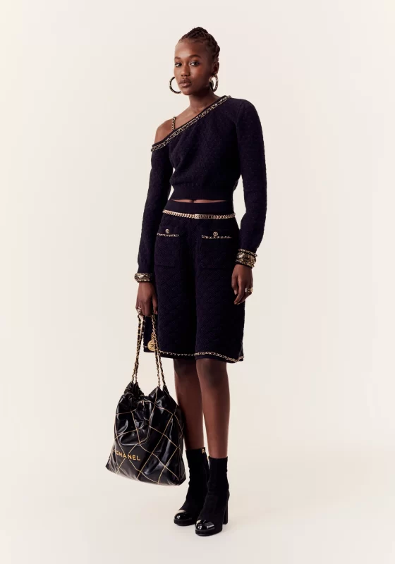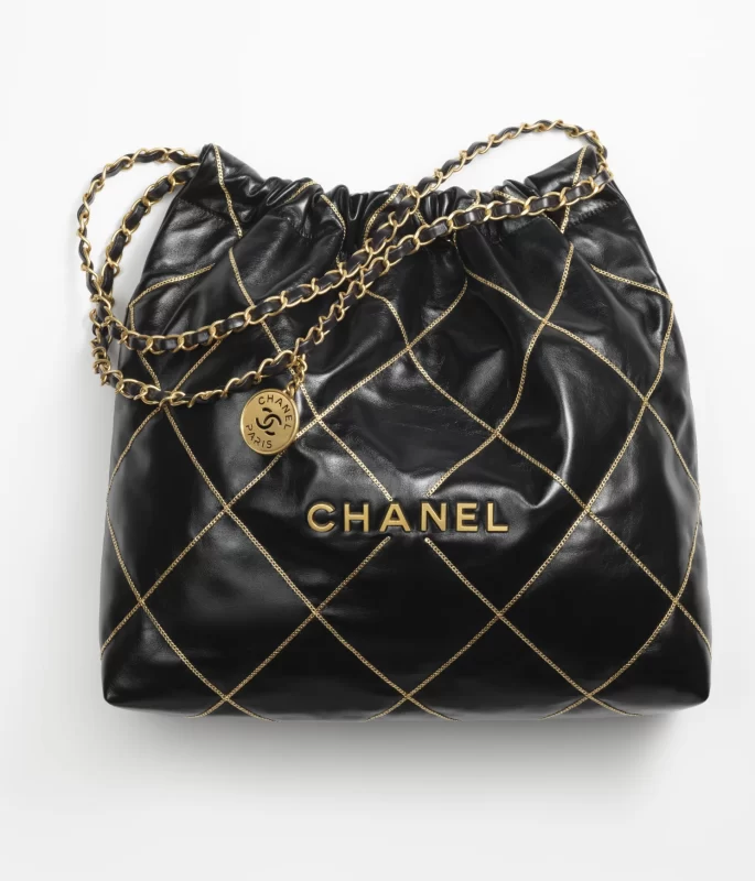 CHANEL / CHANEL 22 HANDBAG Shiny Calfskin & Gold-Tone Metal Black
