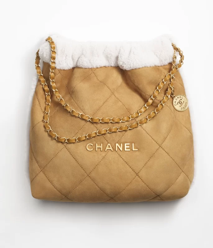 CHANEL / CHANEL 22 HANDBAG Shearling Suede Lambskin & Gold-Tone Metal Beige & White