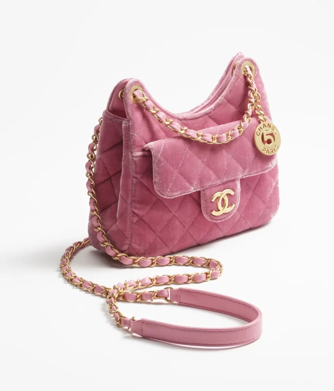 CHANEL / SMALL HOBO BAG Velvet & Gold-Tone Metal Pink Ref. AS4323 B13815 NQ948