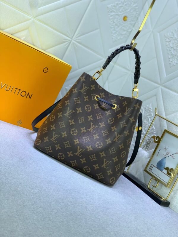 LV m44022 m44887m44020 m44021 old-fashioned brown white qaston-louis vuitton’s 1932 champagne bag is transformed into a heritage néonoé bucket bag