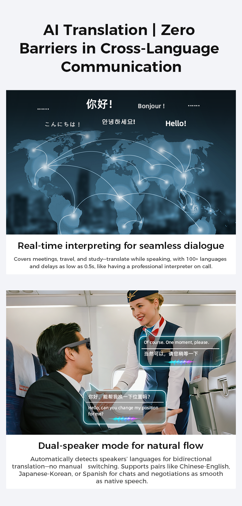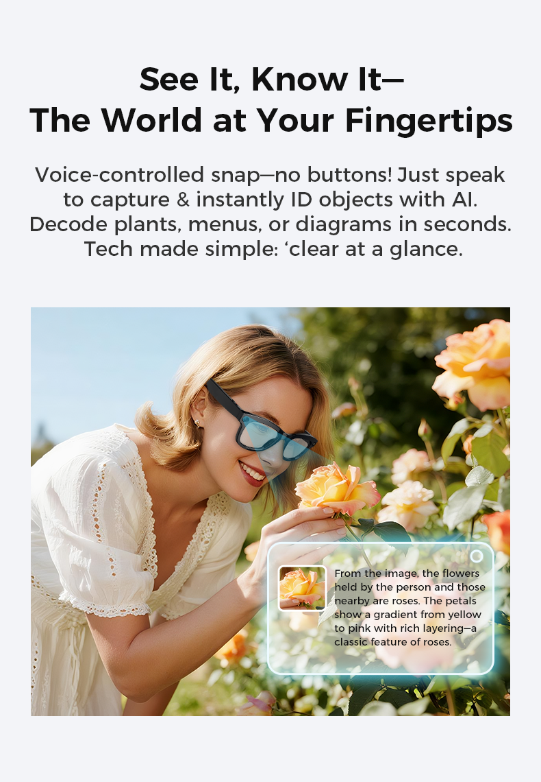 More than just a pair of glasses, this is your portable office, translator, and camera all in one. Whether you’re traveling abroad, taking meeting notes, vlogging your adventures, or just staying connected on the go, the AI Smart Glasses keep you productive and connected—without sacrificing style or comfort.