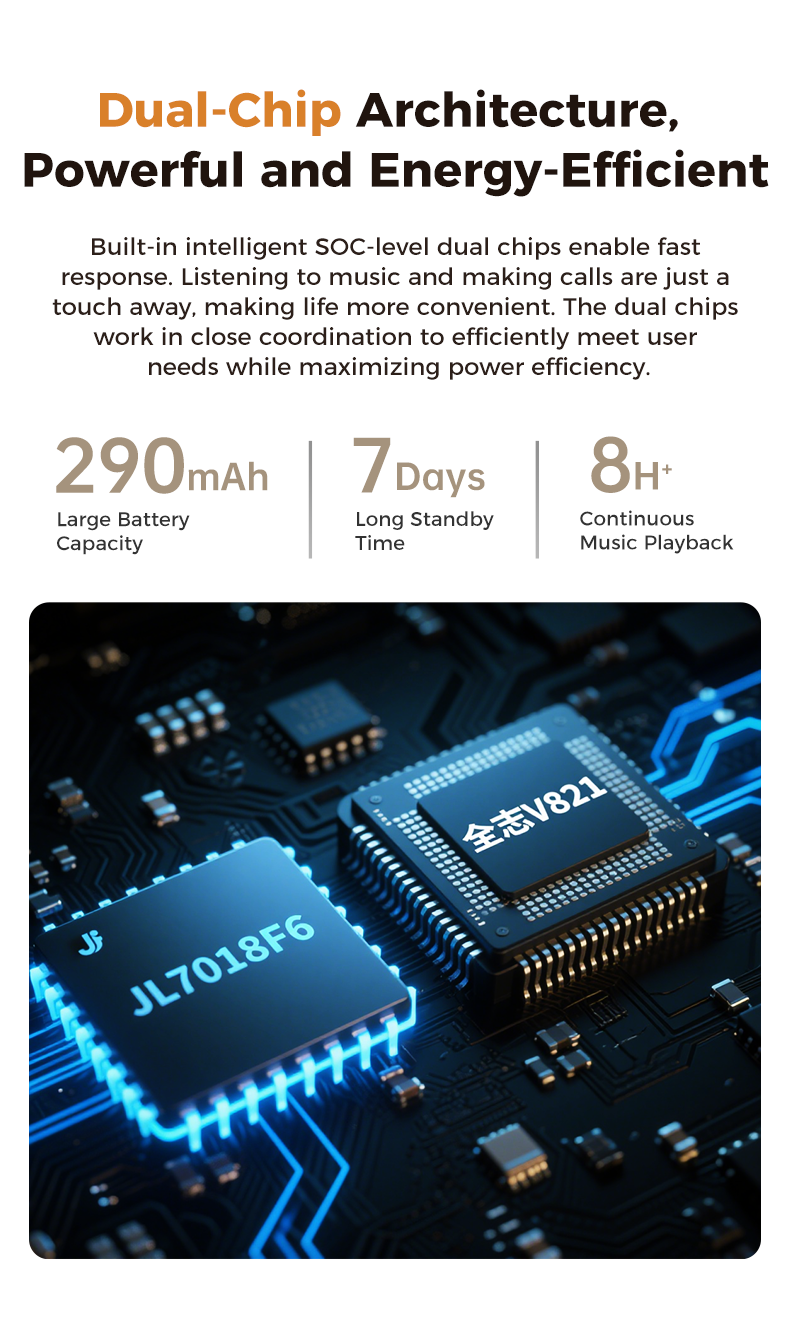 Long Battery Life: 290mAh battery provides up to 3 hours of talk time, 8 hours of music playback, and 4-7 days of standby time, with fast 1.5-hour magnetic charging.