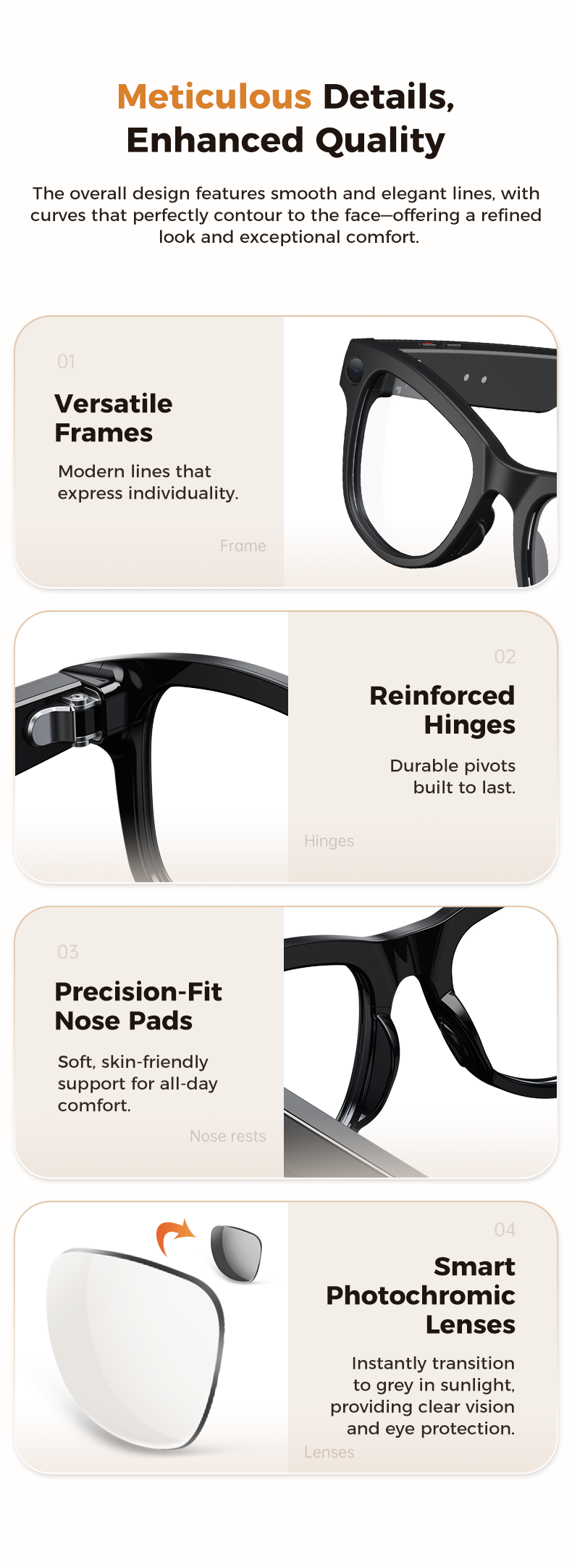 More than just a pair of glasses,is a portable hub for communication, creativity, and convenience. Its classic design fits seamlessly into any wardrobe, while its powerful AI and multimedia features keep you connected and productive wherever you go. Whether you’re a traveler, content creator, or tech enthusiast, the AI Smart Glasses are the perfect upgrade to your daily life.