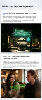 139-Language AI Translation & Assistant: Supports simultaneous translation, dialogue translation, and AI voice assistant (wake word: “Hey Cyan” / “你好,小橙”), breaking down global communication barriers.