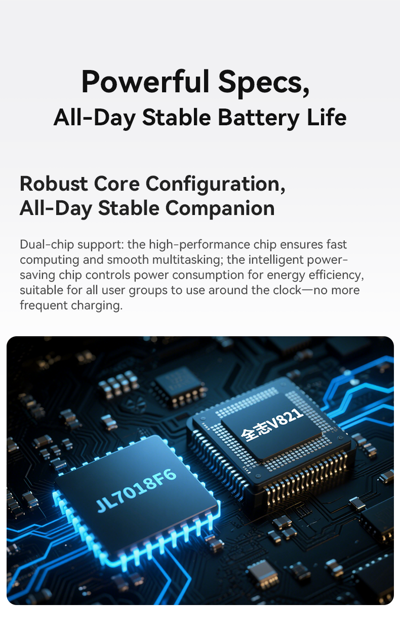 Dual-Microphone Noise Reduction: 2 MEMS microphones with ENC noise cancellation, delivering clear calls and audio recordings even in noisy environments.