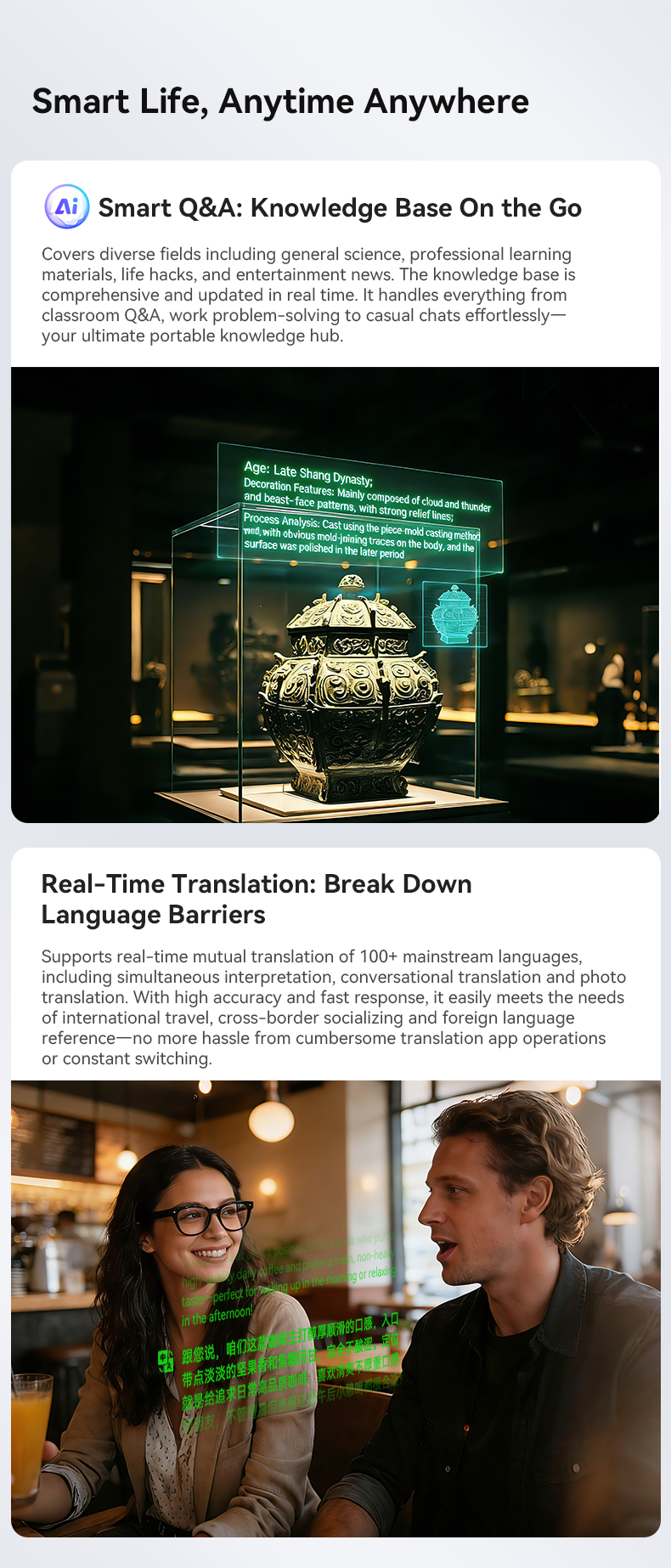 Whether you’re documenting your travels, conducting cross-border business, or capturing life’s moments, this is the ultimate wearable tool. Its Sony-grade camera, 139-language translation, and long-lasting battery make it perfect for global adventurers and professionals—all wrapped in a stylish, durable frame that fits seamlessly into daily life.