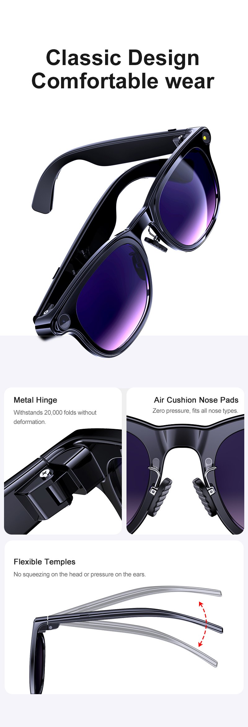 Experience the future of wearable tech with the A2 Smart Glasses—a sleek, lightweight design that merges professional-grade recording, real-time AI translation, and seamless connectivity into one stylish accessory. Built for travel, work, vlogging, and everyday life, these glasses turn every moment into an opportunity to connect, create, and communicate effortlessly.