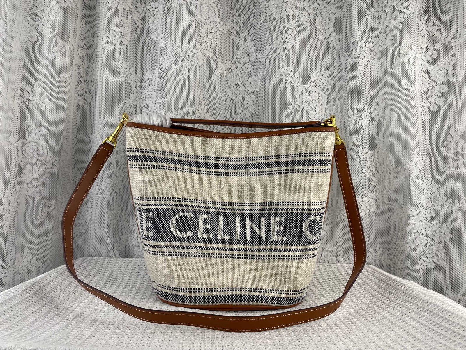 BUCKET 16 CELINE Fabric Cow leather bucket bag