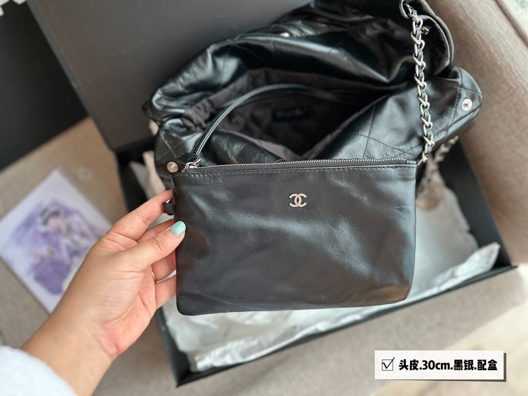 30*32cm (small) Black silver natural color chanel 22bag is cooler! Oil wax leather is very resistant to making high-grade feeling full  garbage bag