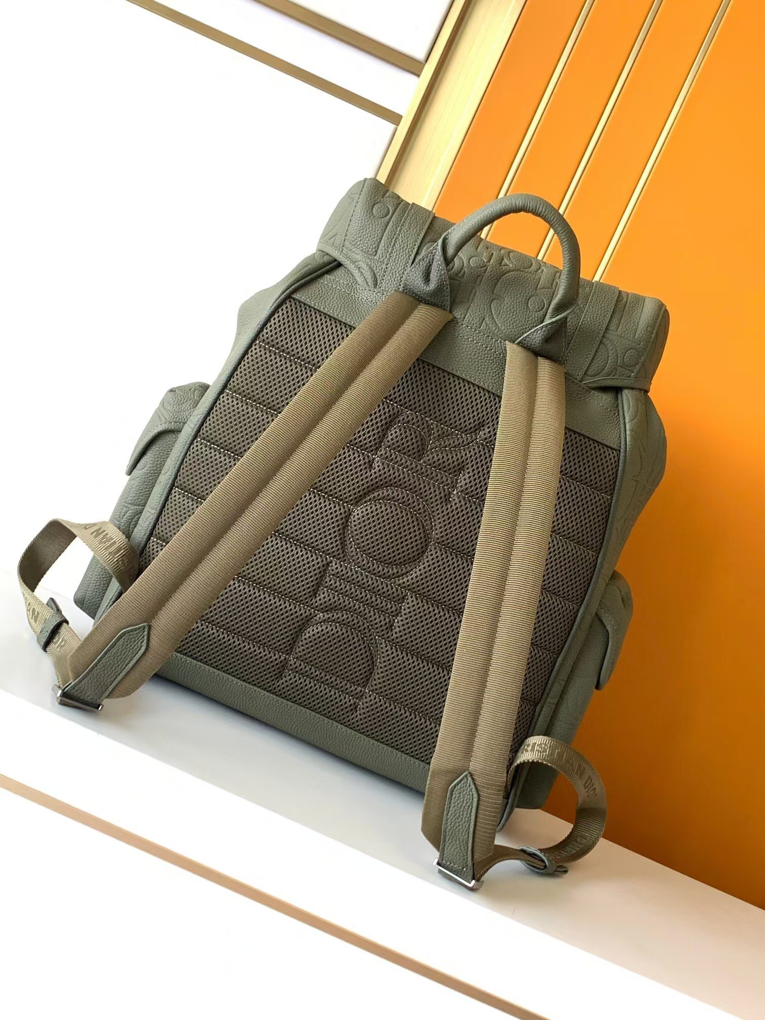 Dior backpack, 205 green full leather. Full leather – the latest saddle backpack, runway model, synchronized with the official website, original quality Full leather model is made of luxurious black grained cowhide leather with a superb handfeel Leather inserts with “cistian” embossed logo on both sides of the front Front saddle pockets and two pockets on the side Top clip closure with flap New style, unique and charismatic, fashionable and elegant. Trendy and versatile, it’s a great traveler’s item, size: 34x44x16cm.