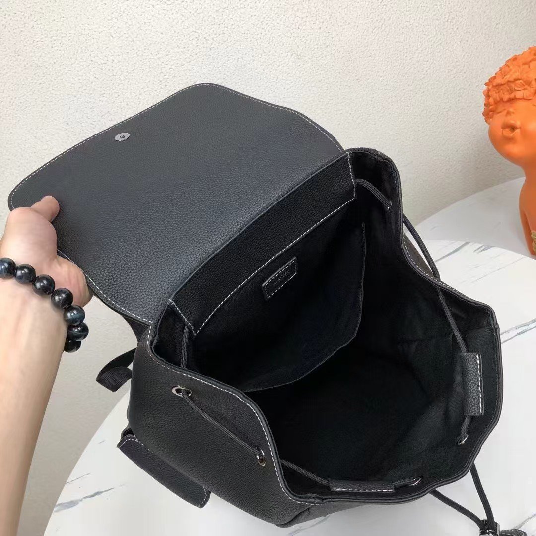 The saddle backpack brings style and originality to saddle design. Black grained calf leather with contrasting stitching and the Dior logo on the front. The spacious interior features 1 compartment for organizing all your essentials. With a saddle flap pocket on the front and 2 flap pockets on the sides, it is ideal for storing your wallet, keys, headphones or cell phone. This practical backpack will complement any look.