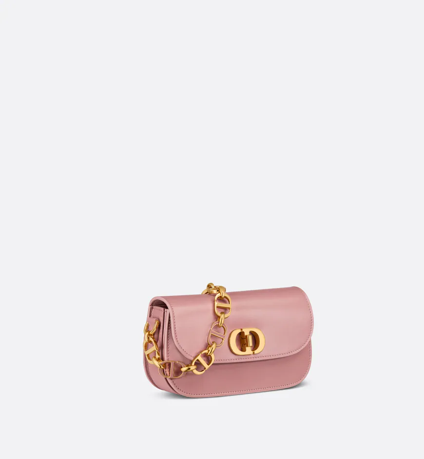 The 30 Montaigne Avenue bag enhances the hallmark line with a timeless and elegant shape. Crafted in black box calfskin, the rounded flap with delicate curves is punctuated by an antique gold-finish metal CD twist clasp inspired by the seal of a Christian Dior perfume bottle. The design is completed by other details, like the 30 Montaigne signature embossed on the back and the signature chain alternating gold-finish metal and tonal enamel links that match the leather. The small, gusseted bag features a refined silhouette that can be carried by hand, worn over the shoulder or crossbody.