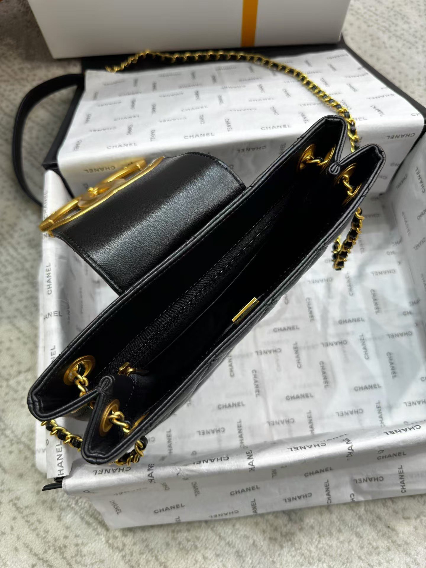 Exclusive real Chanel 24c large logo Tote underarm bag large logo super handsome do day hardware retro sense pull full! The most important thing is that the black gold will never go out of fashion, carry a few years no problem, can be shoulder crossbody ~ super recommended. Size:17.5x20x5cm