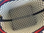 From the gucci lido collection, this piece is inspired by the Italian coast’s summery atmosphere and beach clubs. original gg canvas is used to create this medium-sized tote bag. Brown leather piping and internal webbing detailing complement the beige and ebony pattern.