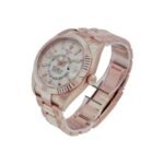 This Rolex Sky-Dweller Rose Gold White Dial 326935-0005 Oyster Replica is a striking watch. The case is made of 904L stainless steel and is rose gold in color. It has a sapphire crystal and is 42.00mm in size with a thickness of 14.10mm. The bracelet is also made of 904L stainless steel and is adjustable for all sizes. It has a fold clasp and is rose gold in color. The dial is white with stick indices and hands made of 904L stainless steel.