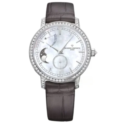 The brown crocodile leather strap paired with an 18K 5N pink gold buckle is comfortable to wear and exudes nobility. Waterproof depth of 30 meters, suitable for daily use. The overall design is retro and elegant, showcasing the classic aesthetics of Vacheron Constantin, making it a masterpiece suitable for both collection and wearing.