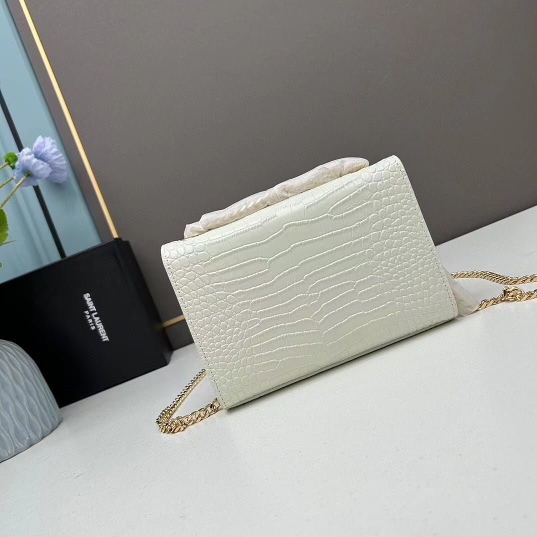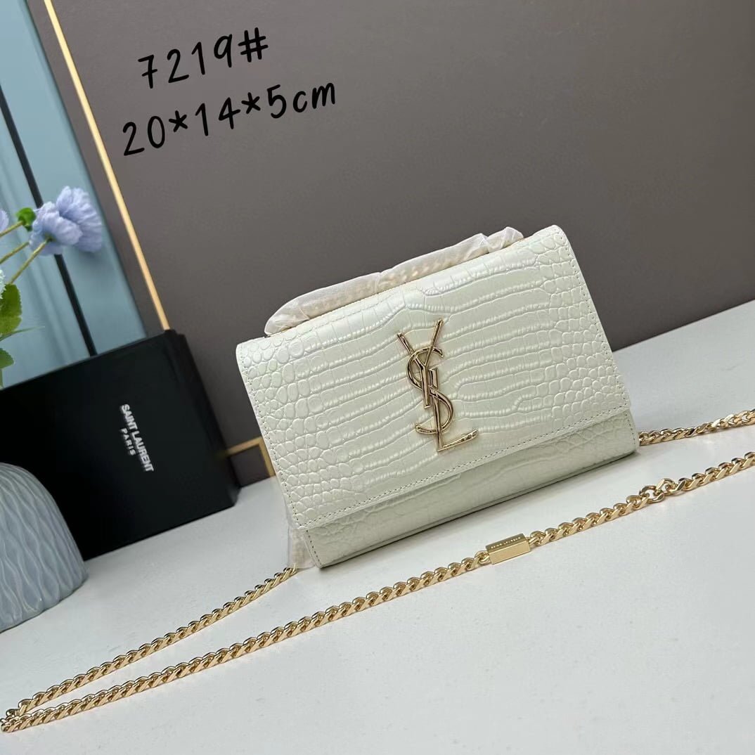 Home BAGS YSL YSL Kat crocodile chain strap shoulder bag with gold hardware 7219 white size: 20*14*5cm/24*15*6cm